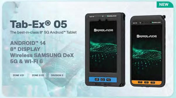Digitalized workflows are increasingly finding their way into the (process) industry. However, mobile devices such as smartphones and tablets that are used in these areas must meet the latest and strictest safety standards and be reliable and easy to use even in the most adverse environmental conditions. With the new Tab-Ex 05,Pepperl+Fuchsisnowlaunchingthefirst5GcapableAndroidtabletwithan8-inchscreenthat is approved for use in Zone 1/21 and Div. 1 (classificationsofhazardousareas).TheAndroid Enterprise Recommended device is based on the Samsung Galaxy Tab Active5 and, according to thesupplier,hasanumberofotherwell-thoughtoutfeatures.