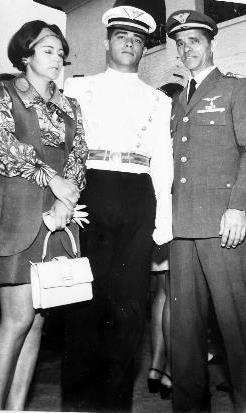 • Acima, à esquerda, Cadete Cícero, acompanhado dos pais, ao redor do “Marco Comemorativo do Cinquentenário da Escola deAeronáuticae dadatadecriaçãodaAcademia da Força Aérea Brasileira, com a honrosa presença do Exmo. Sr. Presidente da República, Marechal Arthur da Costa e Silva;