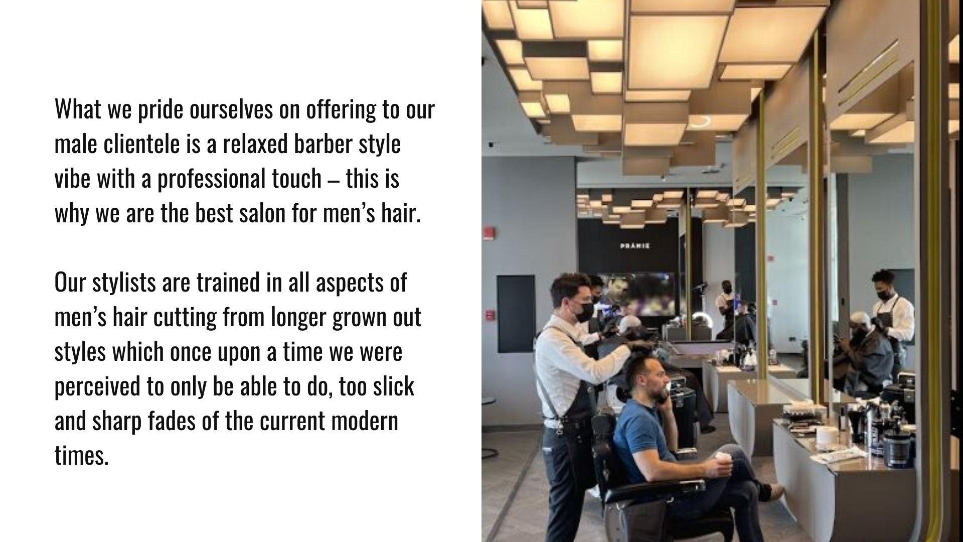 What we pride ourselves on offering to our male clientele is a relaxed barber style vibe with a professional touch – this is why we are the best salon for men’s hair. Our stylists are trained in all aspects of men’s hair cutting from longer grown out styles which once upon a time we were perceived to only be able to do, too slick and sharp fades of the current modern times.