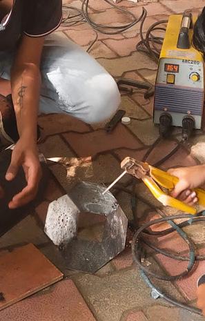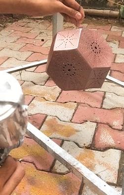 In the pattern for modern textile motifs, given the material parameter here MDF is used as square and metal as hexagon, and so to give both materials the same properties it was coated with Matelic auto paint.