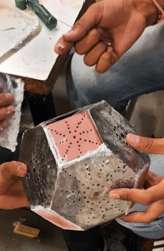The main purpose of my project was to design a form that should be made solely of MDF and metal sheets. Our group wanted to create something volumetric for which we were inspired by the archimedean solids we took in the form of a truncated octahedron.