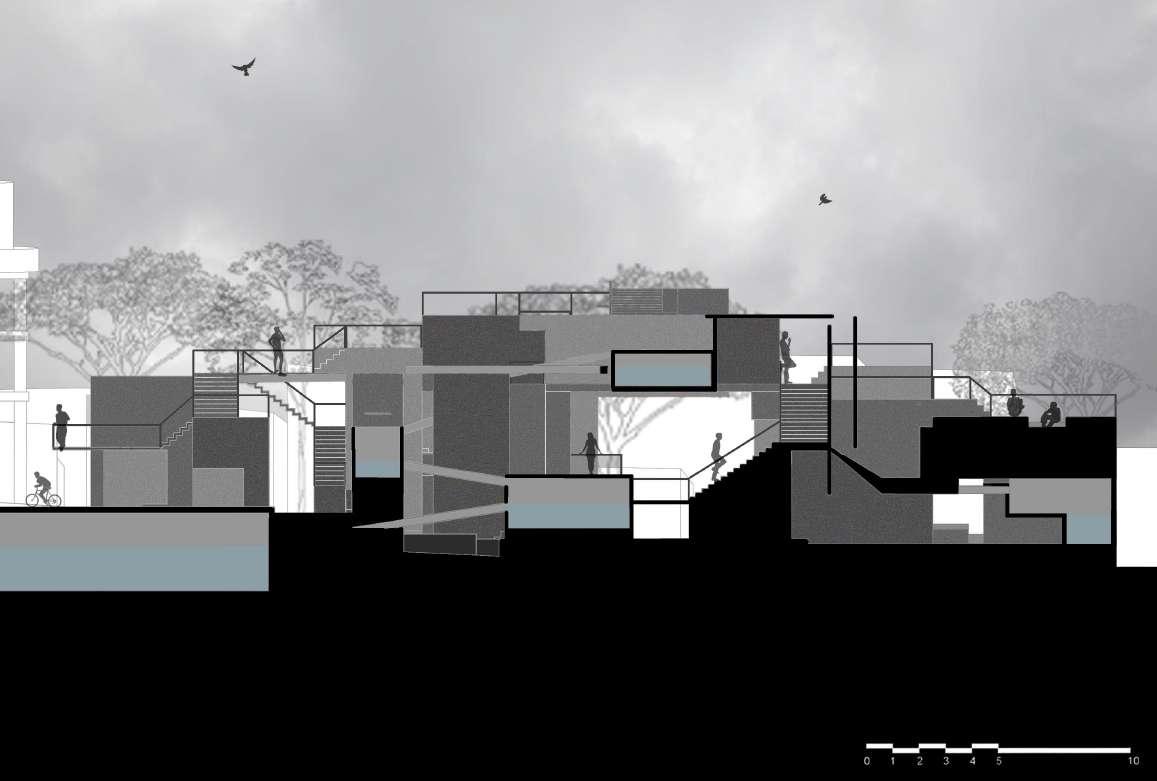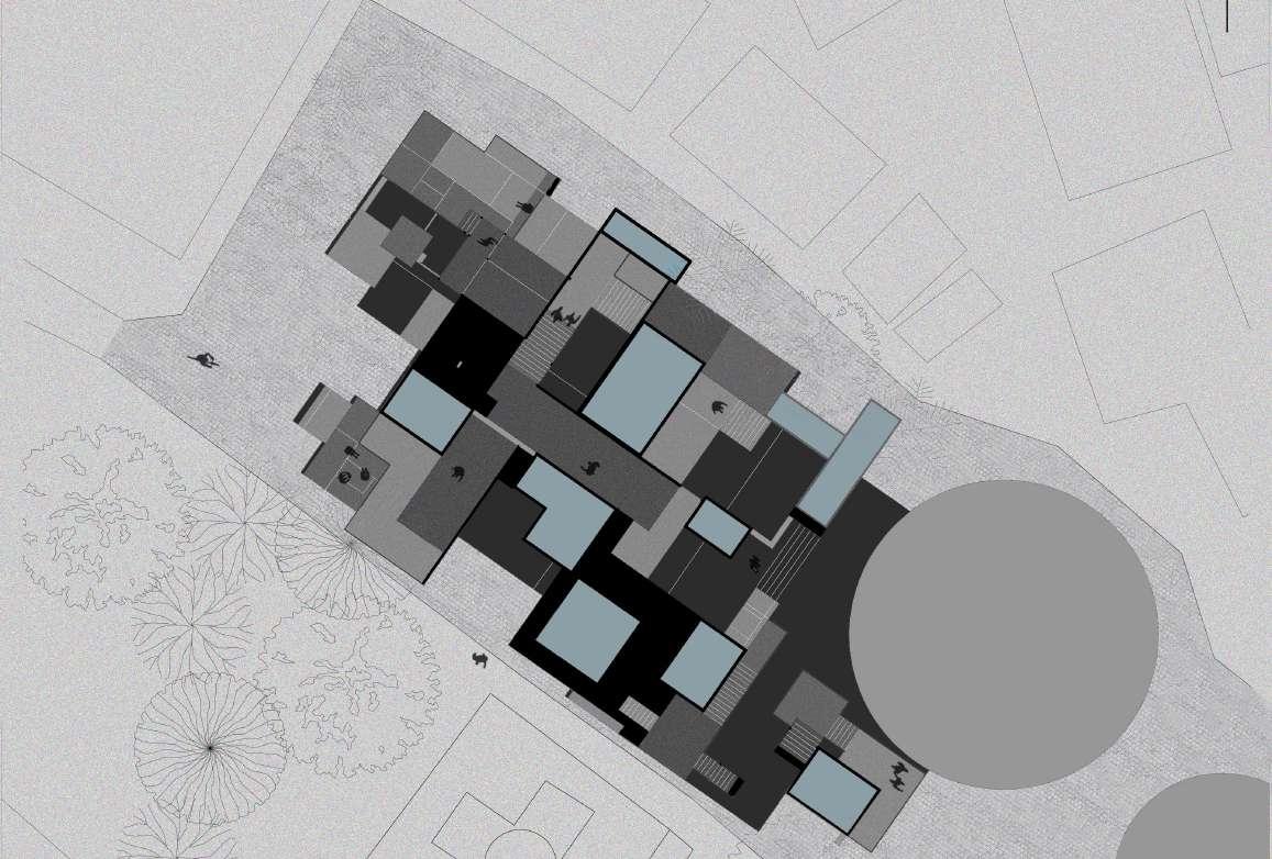 Builtform follows the Ground modulation as well as terraces at different levels acts as interactive spaces