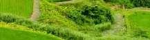 • Grass growing between the stone pitching brings seamlessness between the changing levels.