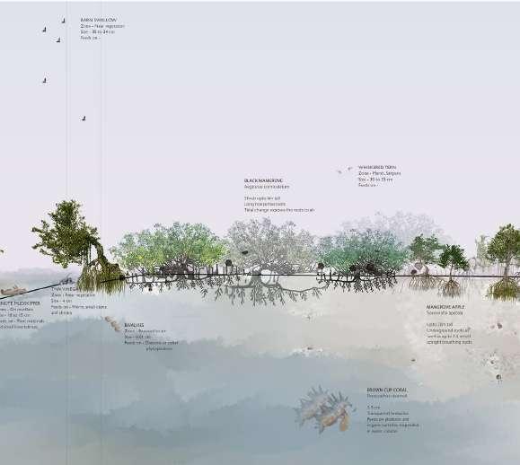Story of Mumbai’s eastern edge > The tidal activities which help sustain the adjacent mudflats and the species which survive in the muddy ground. Mangroves form an integral part of this ecosystem which help prevent soil erosion by holding the particles with their roots.