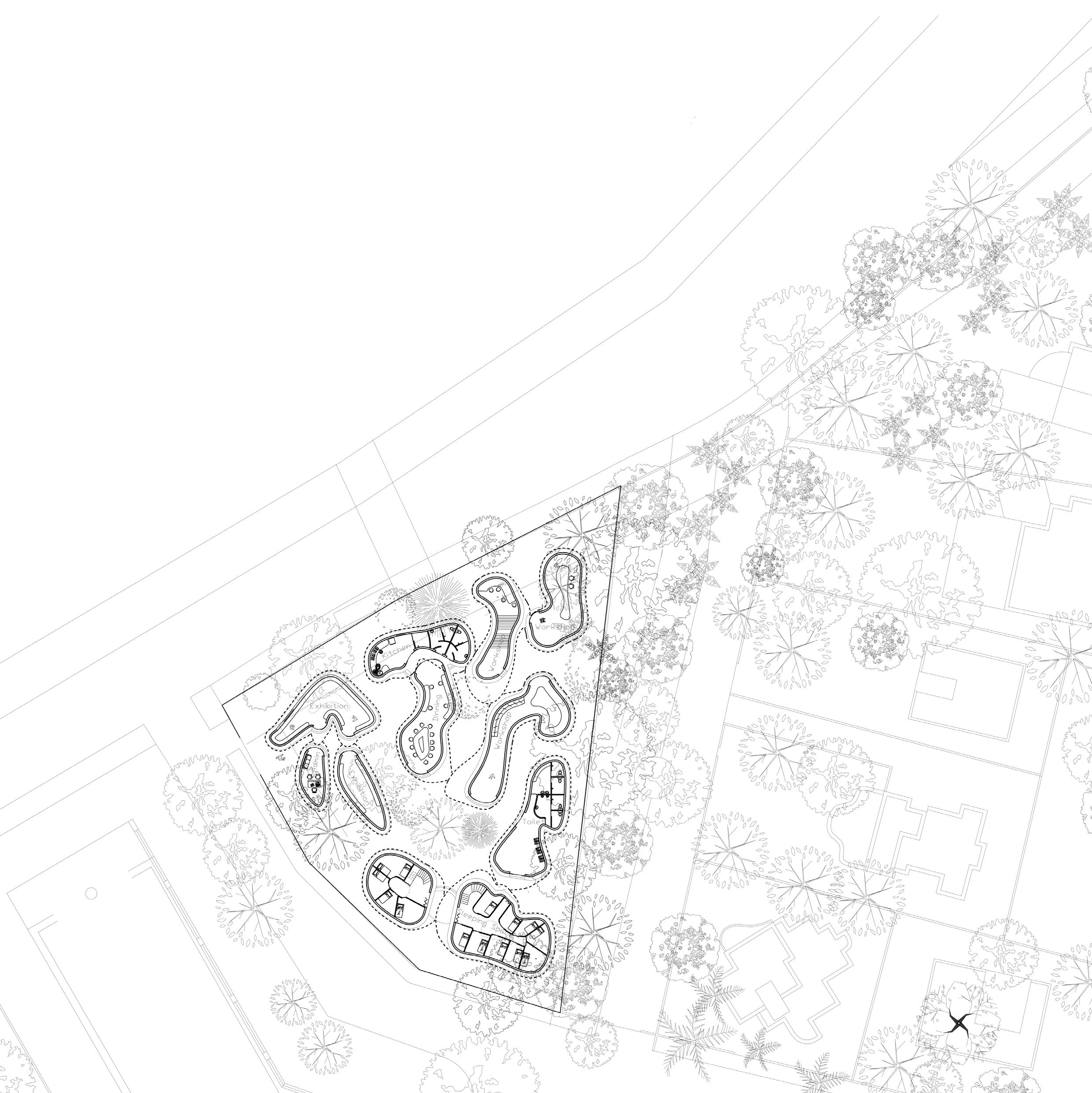The project works around the idea of environment as ecology and tries to develop the capacity to engage with and develop alternative imaginations and spatial configurations of the build and the unbuilt that address questions of harvesting, consuming and managing of environmental flows.The vegetative approach and ecological centrality brought in the floral and the landscape artists as a user group of the artist residency. The residency comprises multiple non-orthogonal buildings which are recessed from each other to create a flow of vegetation around them which eventually results in an experience of being in ecologically sound space, creating a capacity to imagine and locate architecture in the larger urban fabric. All the units are ground floored with varying heights to allow proper flow of wind. The exposed brick structure makes itself grounded to the earth. The crafted built environments tries to craft experiences of flows to create comfort conditions and that will create newer spatial logics of inhabitation.