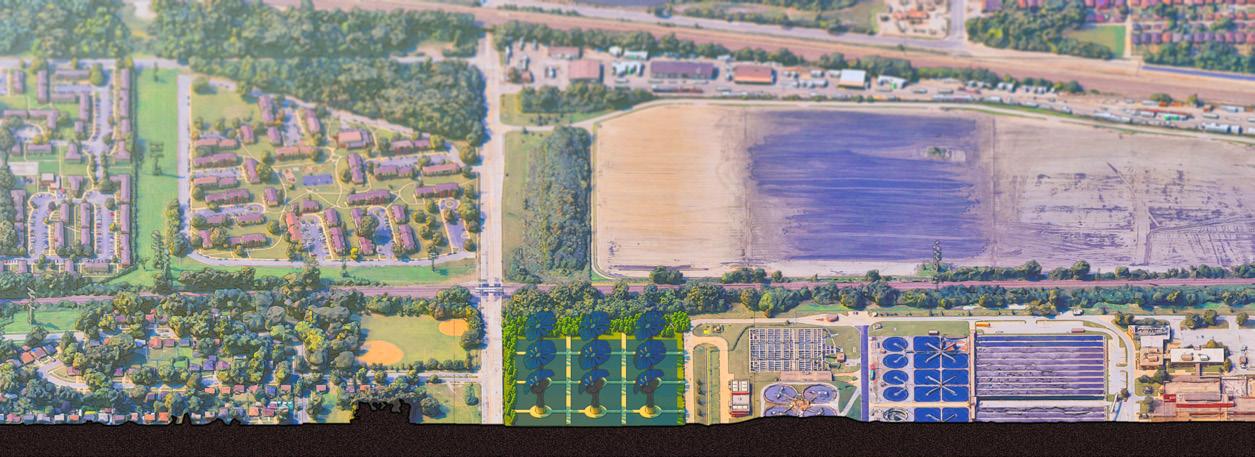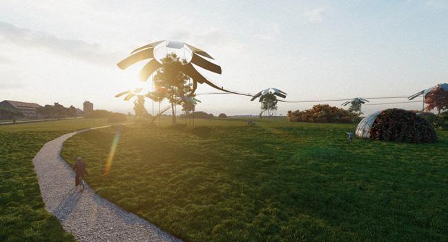 Context: The metaphor extends to the urban context as the audience is towards the residential area, and the stage is towards the industrial area, and the green areas can be seen as proscenium.