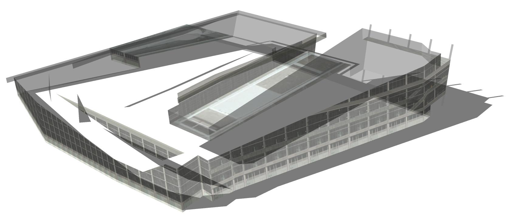 Structure: The auditorium is encapsulated in a concrete shell, while the cantilevers and the glazing on the exterior look out to the str The space is not designed for mobilzation, but as a means of close intera