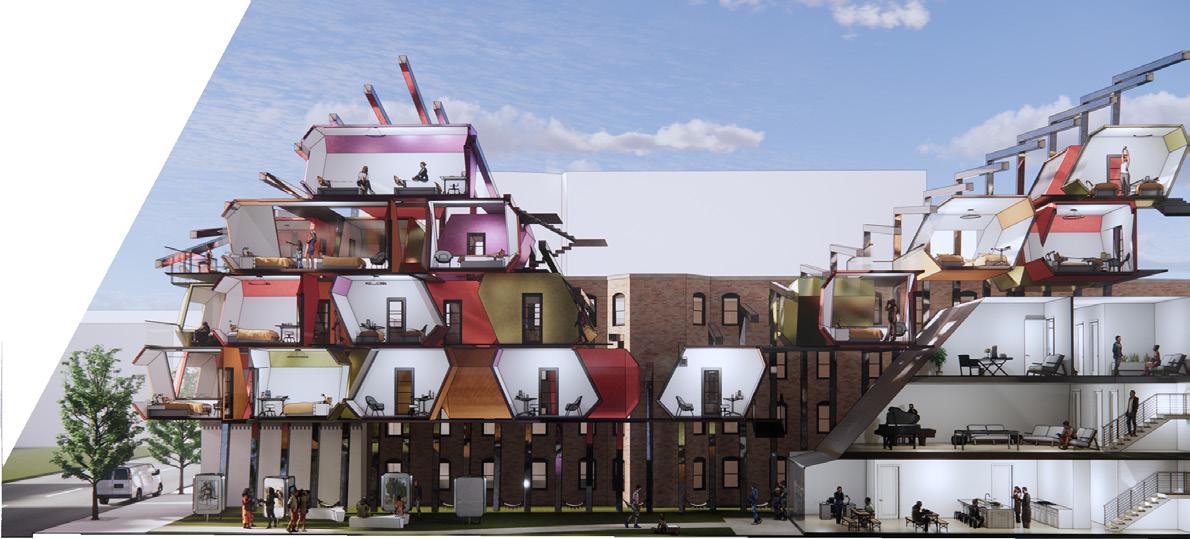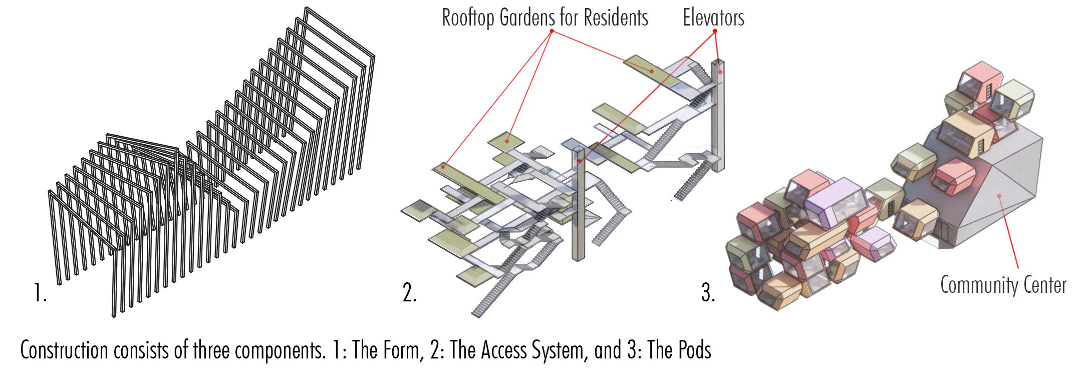 Aiming to uplift people through the pods acting as shelters. Based on the concept of movement and transition. Inspired by the nomadic lifestyle of the people on skid row.