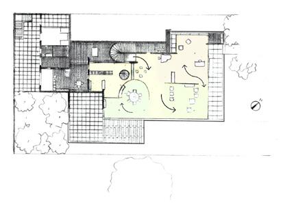 Using a frame from an animation, created a floor plan and a design that allows continual flow throughout, for an active personality.
