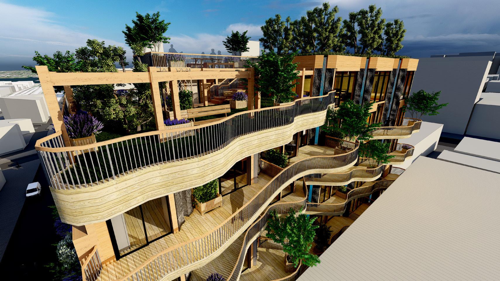 Residential CLT project on Melrose Avenue, Seattle. Concept was based on the surrounding landscape of Seattle and the idea of a mountain, a stream and a cave/shelter. The models were developed in Rhino and Revit; renders and perspective sections were created using Lumion and Photoshop; sculptures were modeled using Blender Sculpting.