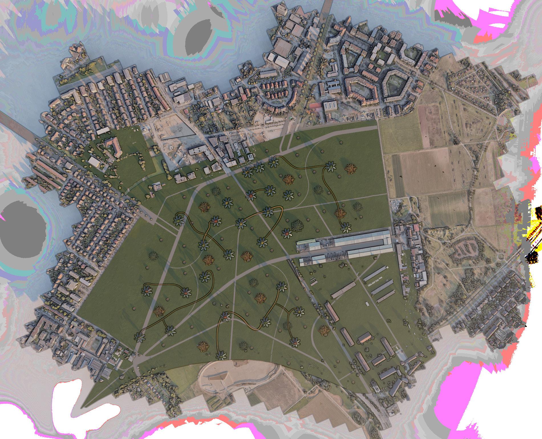 urban context as the audience is towards the residential area, and the stage is towards the industrial area, and the green areas can be seen as proscenium.