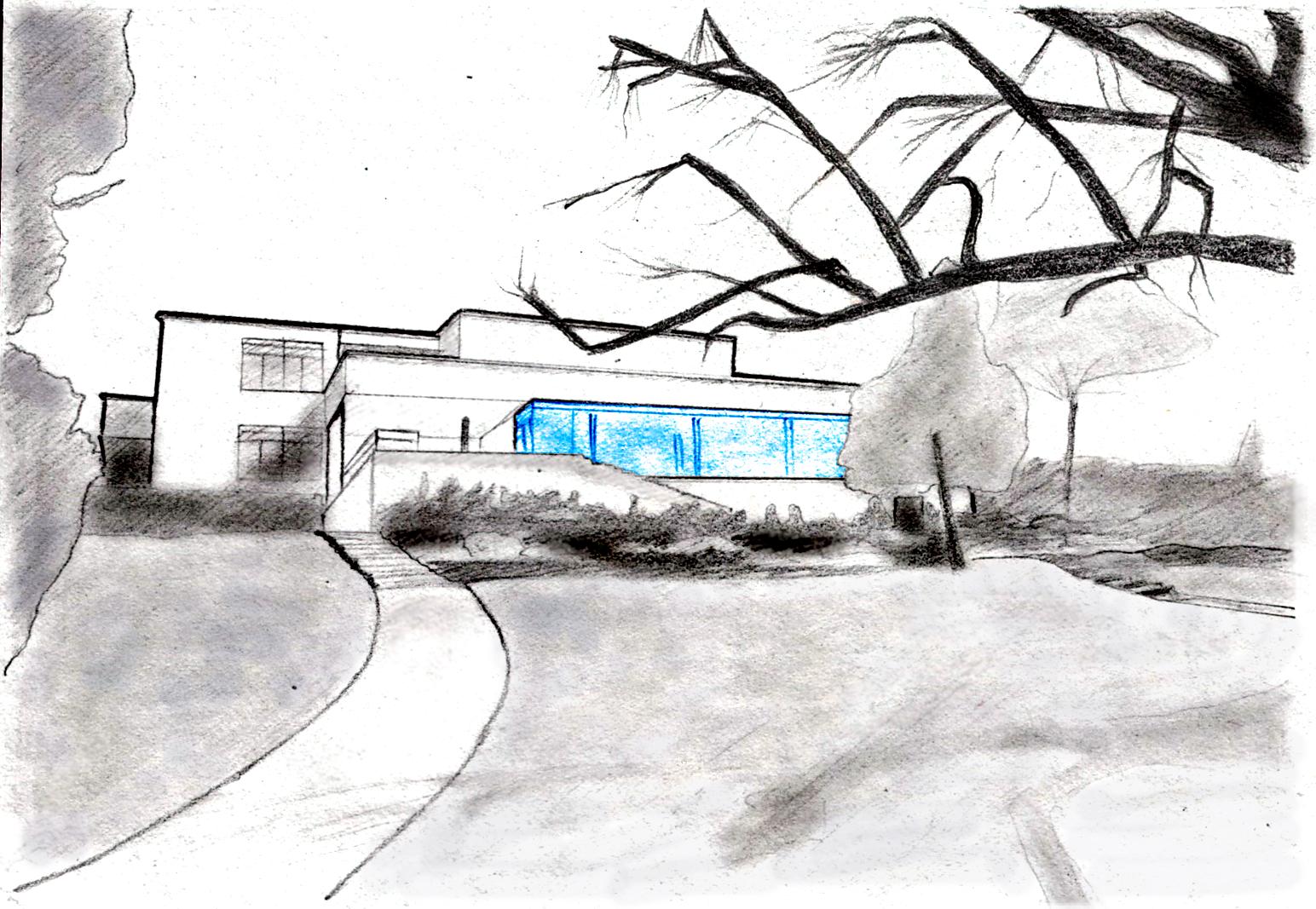 Drawing Tughendhat Building by Mies Van Der Rohe 1928-30