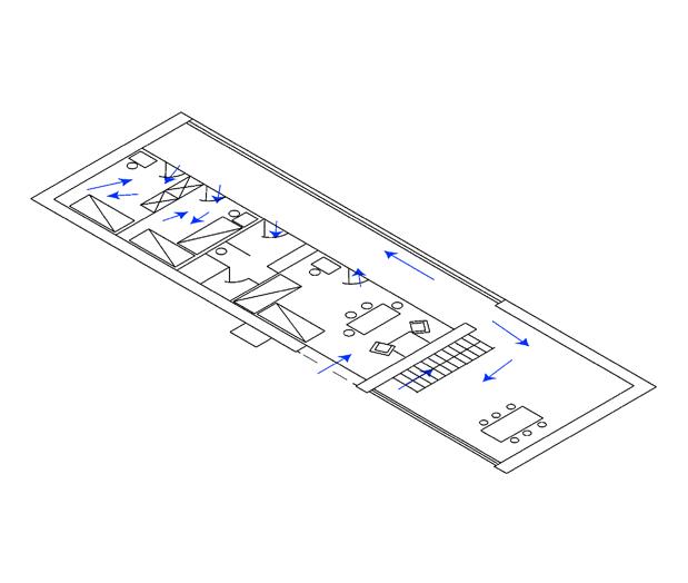 while the cantilevers and the glazing on the exterior look out to the str The space is not designed for mobilzation, but as a means of close interaction.