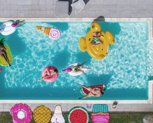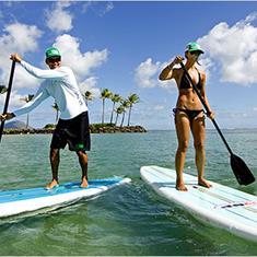 Clockwise from top left: Surfboard Shaping Lessons | Acai Bowl Station| Beach Boys Cover Band | Spike Ball | Havianas Gifting