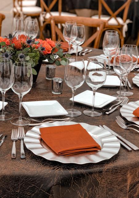 • Examples: Locally sourced food, reusable + replanted centerpieces, local impact projects, alternative transportation options