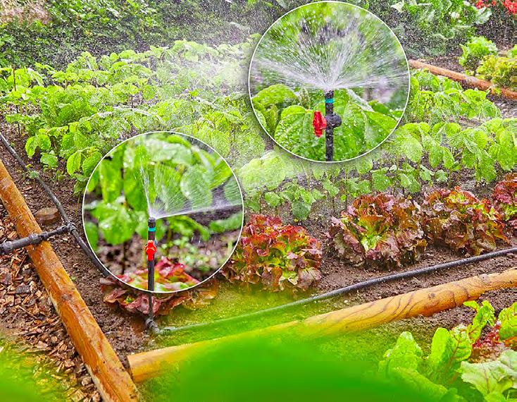 Das Set des Micro-Drip-Systems ist ideal, um bis zu 60 m² Gemüse- und Blumenbeete mit Wasser zu versorgen.