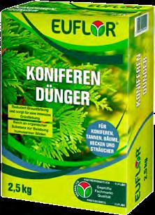 euflor Koniferendünger Rasch und anhaltend wirkender Spezialdünger für Koniferen, z.B. Tannen, Thujen, Wacholder usw. Zur Belebung humusarmer Böden. 2,5 kg
