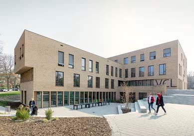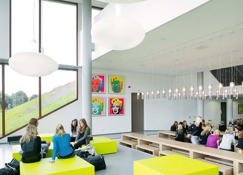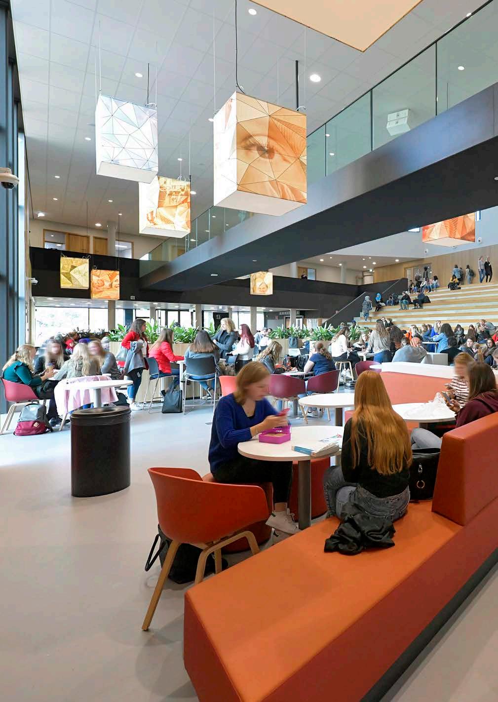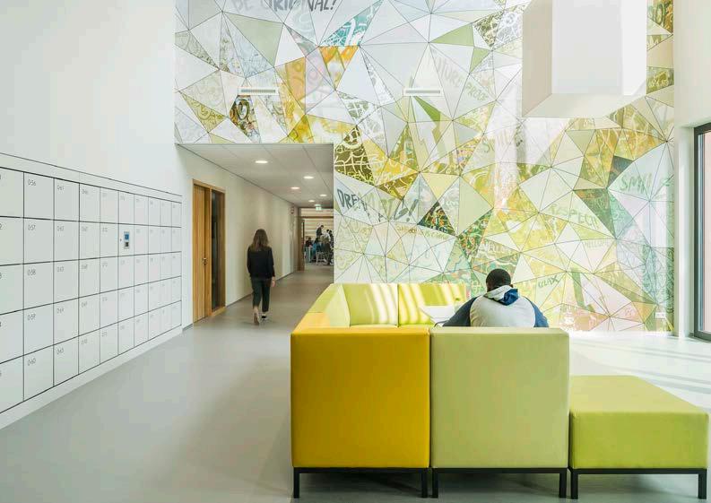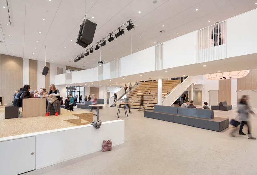 The aim was to create a school that would provide over 1500 students with an intimate, comfortable atmosphere – a school where students themselves are top priority. To do so, a special focus has been placed on small-scale design aspects. The result is a building with comfortable and engaging learning environments, where interior and exterior merge seamlessly with one another.