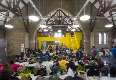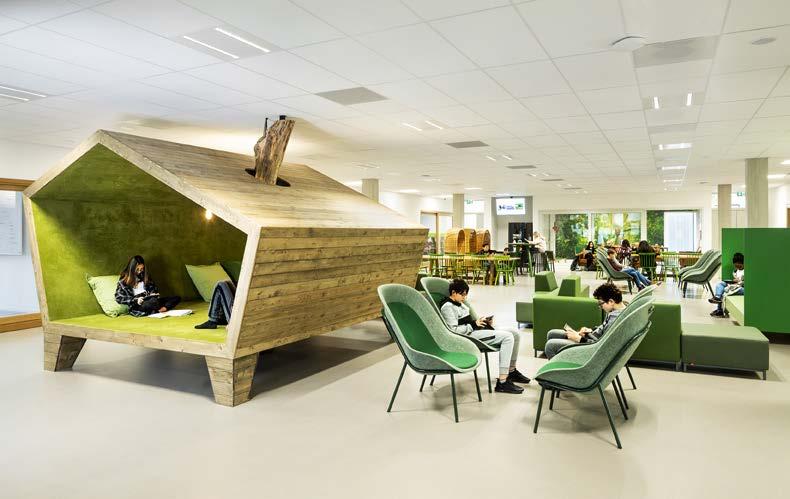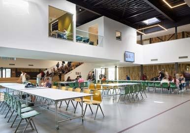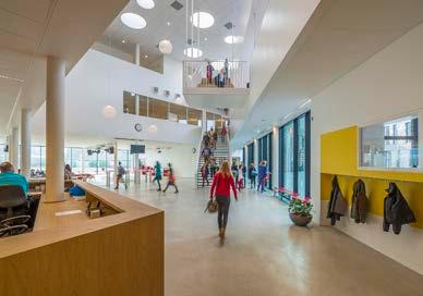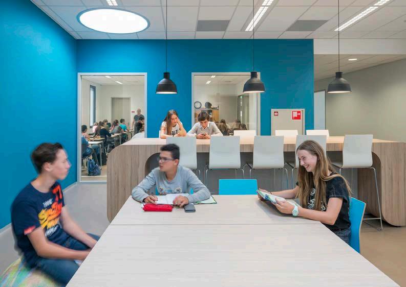Bereichsgliederung bezüglich Aktivitäten innerhalb der Schullandschaft: von Dynamik zur Ruhe Im Großen und Ganzen verläuft die räumliche Gliederung von sehr dynamischen Aktivitäten zu sehr ruhigen Aktivitäten. Diese Gliederung spiegelt sich im Aufbau der Räume. Die Schullandschaft mit Selbstlernzentren ist an sich bereits neu, und die betreffenden Räume werden noch viel spezifischer werden. Die Aktivitäten der Schüler werden immer stärker betont, und als Ergebnis davon nimmt die Differenzierung in der Art und Qualität der Räume und Möbel zu.