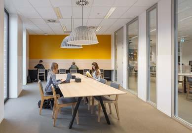 In atelier PRO‘s design, the combination of a healing environment, sustainability and flexibility has strongly been emphasised. The building contains two atriums that function as ‘green lungs’: these are tempered outdoor climate zones with indoor gardens, surrounded by clusters of workplaces.