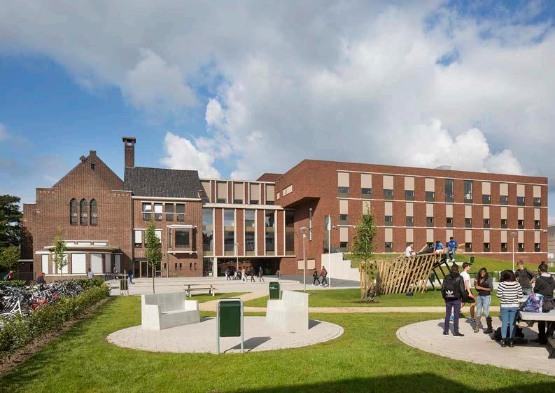 Atelier PRO has designed a completely new learning environment, encompassing both the architecture and interiors, for the senior general (HAVO) and pre-university (VWO) students at Carmel College in Raalte. The landscape design was made in collaboration with Oase Stedenbouw en Landschap urban planning consulting agency.