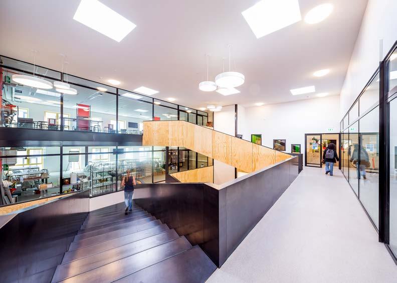 By creating a new opening in the wall, the open learning space has been given more visibility from the central traffic area