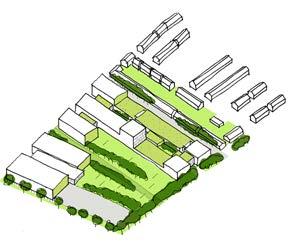 Onderwijspark Ezinge is een complex dat vijf verschil lende scholen huisvest. Een HAVO/VWO, VMBO, MBO, een school voor moeilijk lerende kinderen en een school voor moeilijk opvoedbare kinderen zijn hier samengebracht en worden ondersteund door een sport accommodatie en ruimte voor onderwijsgerelateerde bedrijvigheid. De afzonderlijke scholen zijn herkenbaar door de geheel eigen binnensfeer en een eigen school hart. Door de horizontale verdeling, die tevens subtiel in hoogte varieert, is de massa visueel opgedeeld in klei nere volumes. Hierdoor anticipeert het gebouw op de kleinere schaal van de naastgelegen woonwijk. Hoewel de scholen zelfstandig opereren met eigen theorielo kalen en leerpleinen, zijn ze onderling verbonden aan de hand van gedeelde, strategisch geplaatste praktijkonderwijslokalen. Een centraal gelegen watervaltrap langs vides en spannende loopbruggen vormt een ware ‘route architecturale’ door het gebouw.