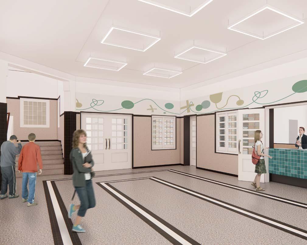 In de visie van atelier PRO wordt de oude glorie van de school hersteld, met respect voor de historische waarde van de monumentale elementen. Door respectvolle ingrepen wordt een nieuwe, moderne leeromgeving gemaakt. En door het interieur hedendaags te maken, krijgt het Berlage Lyceum gebouwen die passen bij haar leervisie en identiteit.