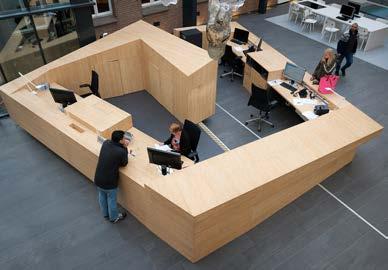 Het Forum. Hier zijn onder de duinen werkplekken gecreëerd.