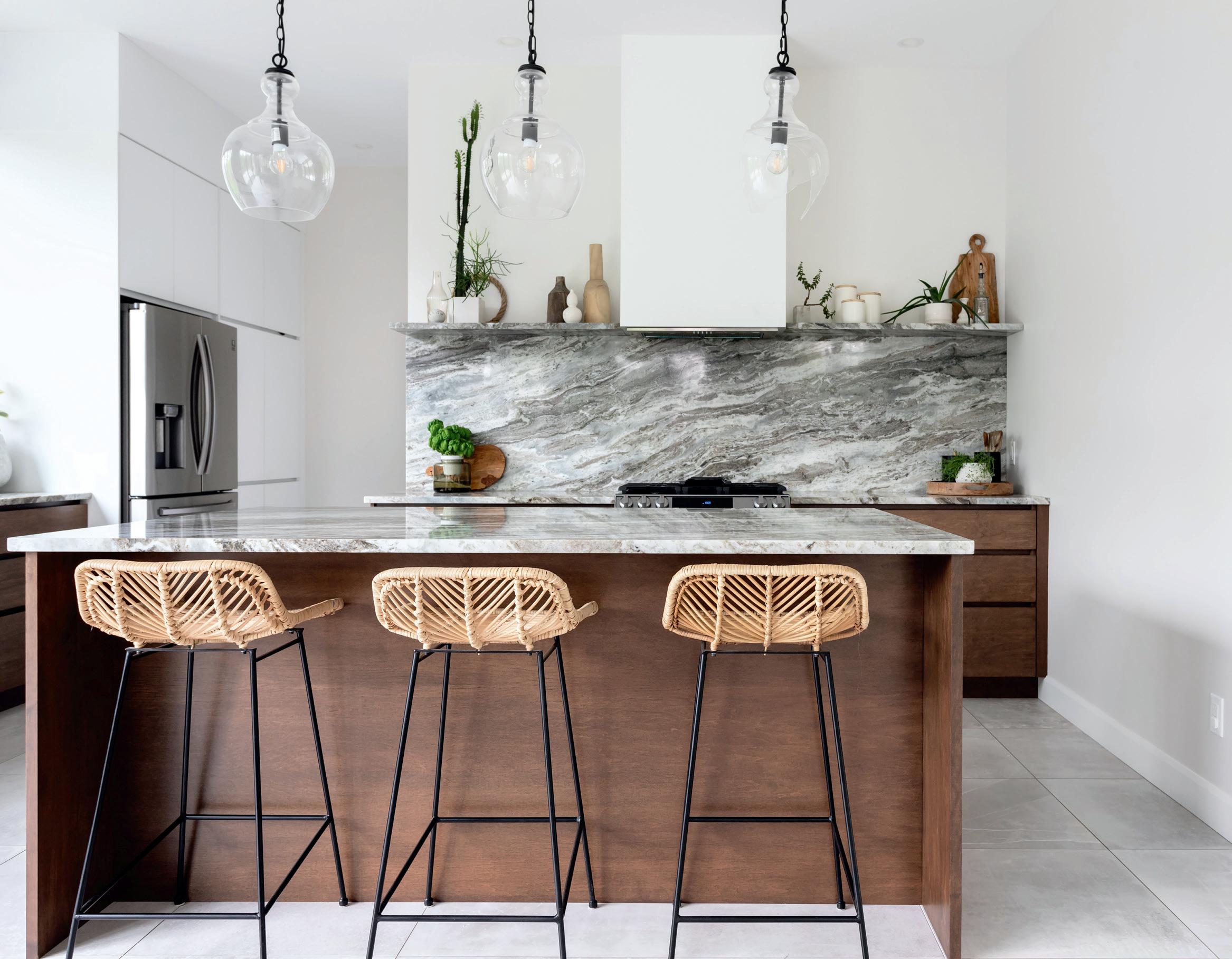 Réalisation, conception et aménagement : L’Agence Cuisiniste. Designer : Maggie Rouleau, instagram.com/maggie_rouleau_designer_. Armoires : Les Cuisines Tech Profab et Alexandre Rubino Ébénisterie. Luminaires : Luminaire Authentik. Photos : Sarah Dagenais, sarahdagenais.com. Texte : Stéphanie Guéritaud.