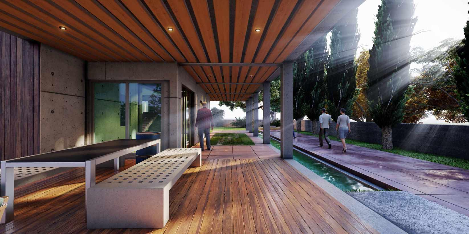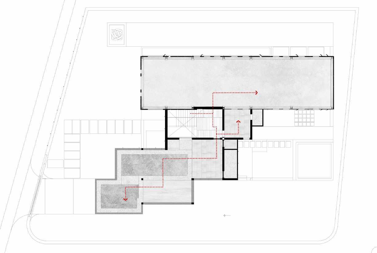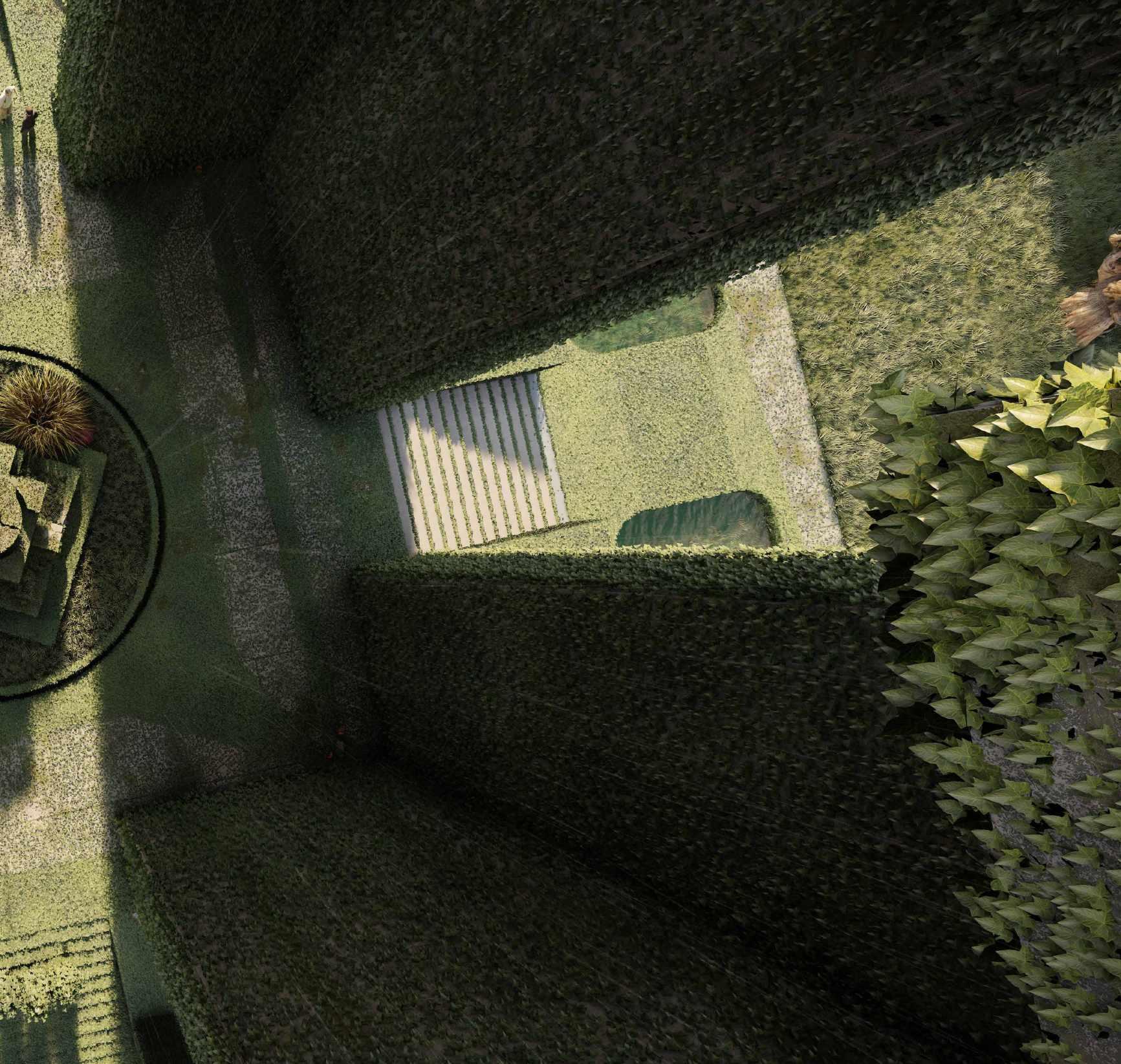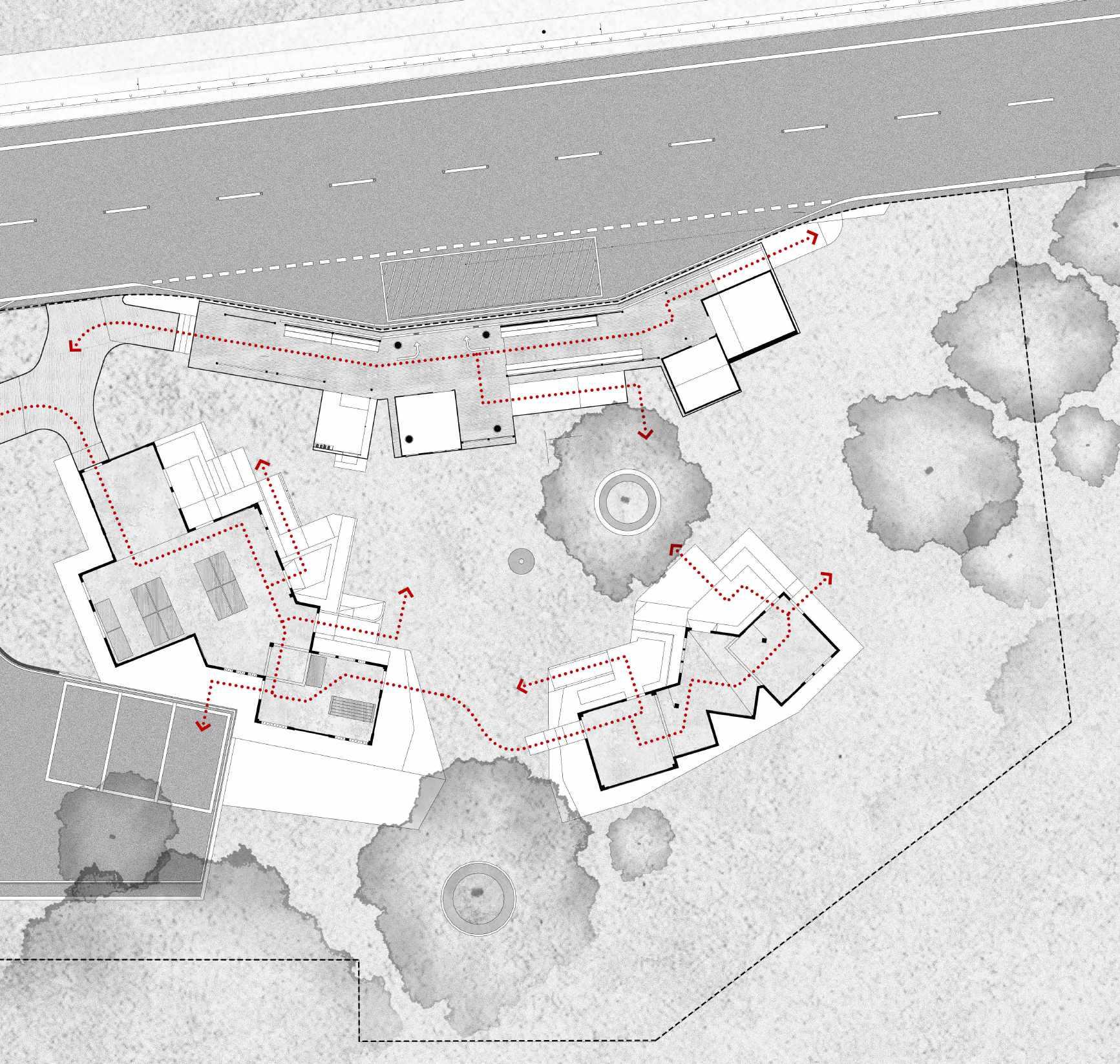 The site sits on a sloped profile which helps in provideng many visual axes.