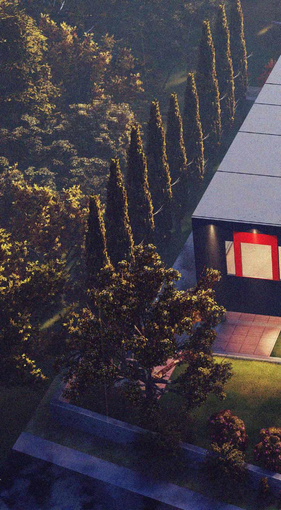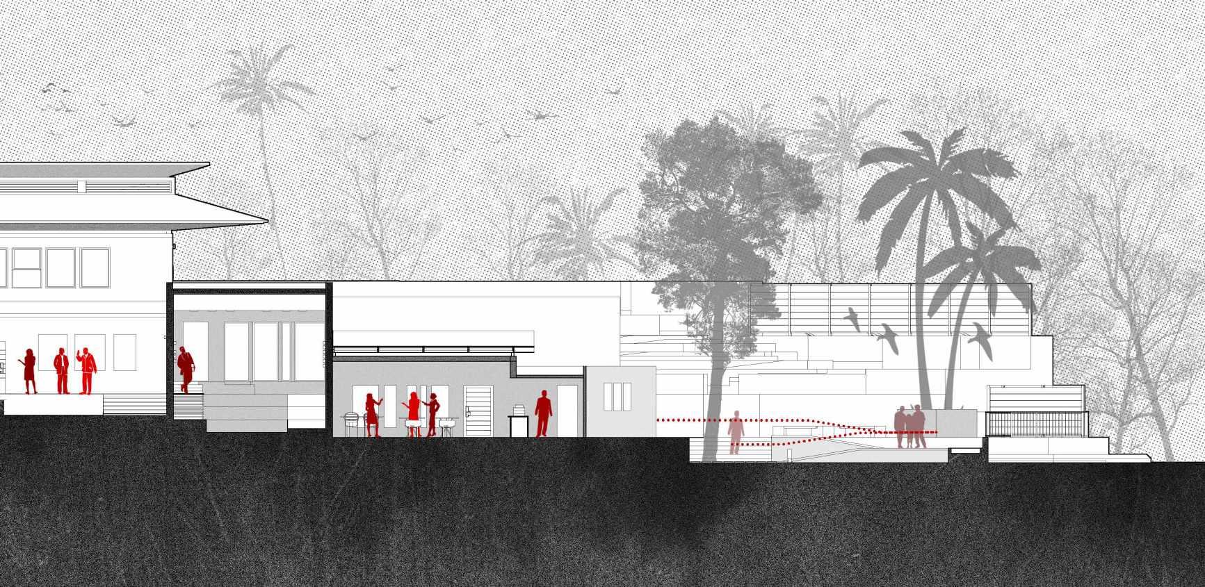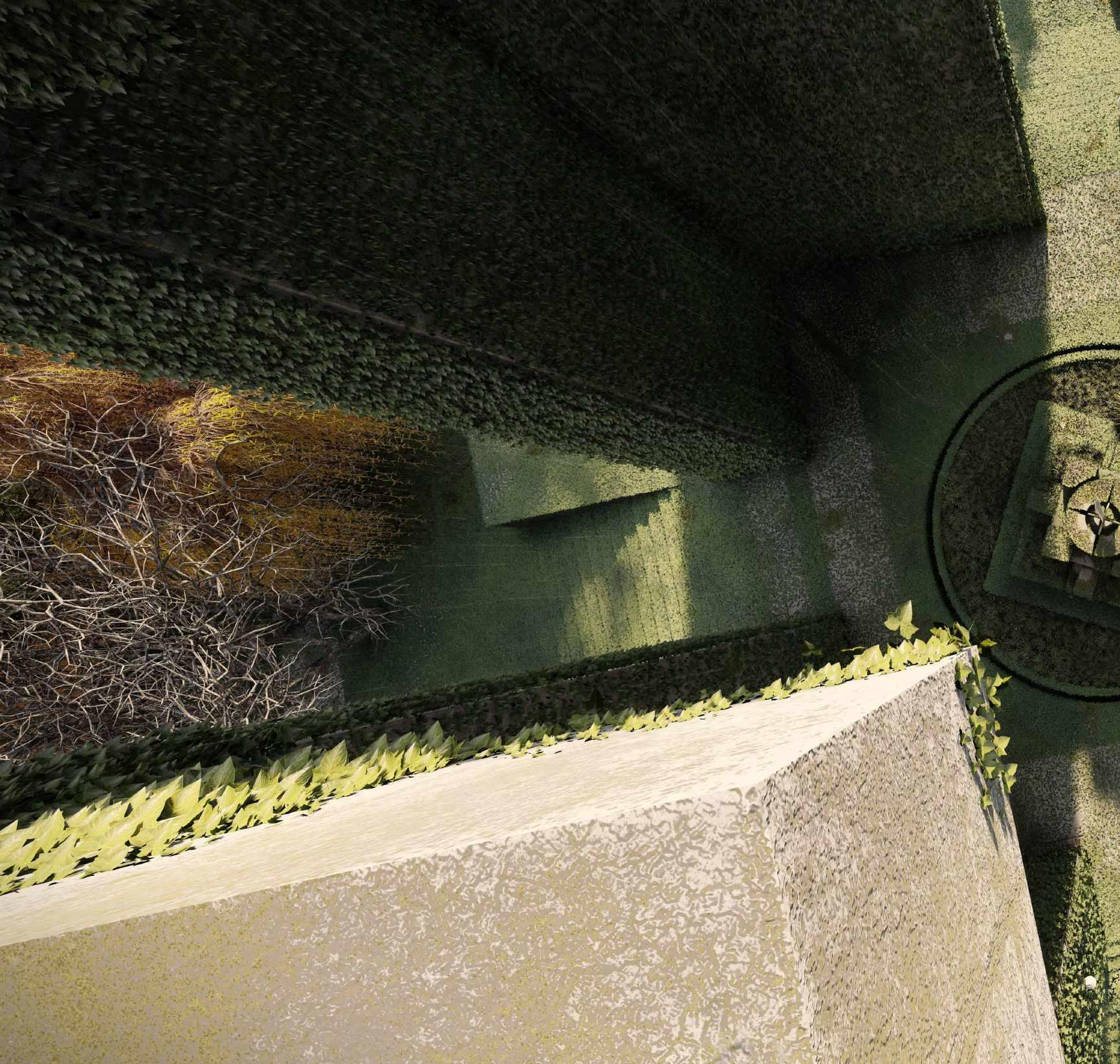 The site sits on a sloped profile which helps in provideng many visual axes.