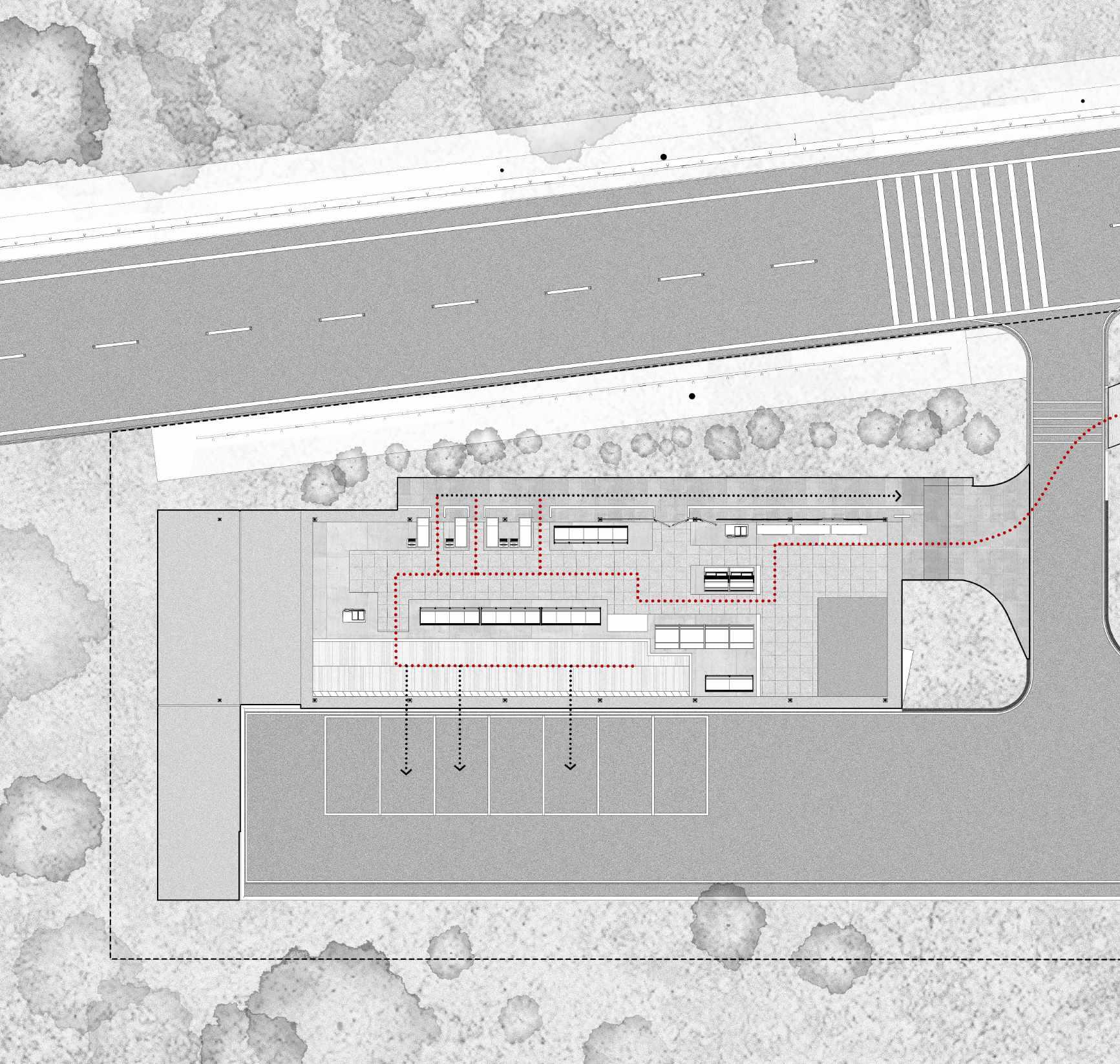 9. Pedestrian entry 10. M/F Washrooms 11. Seating area 12. Ramp entry to shops 13. Bus bay/Boarding platform 14. Tree shade seats 15. General shop 1A 16. General Shop 1B 17. Interjunction 18. General shop 2A 19. General Shop 2B 10 11 13 12 19 18 15 16 17 14 9