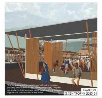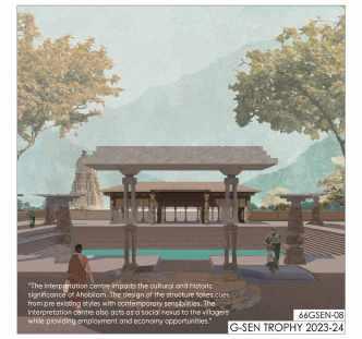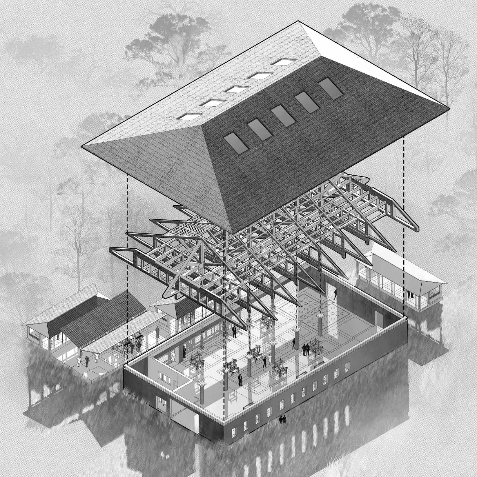 Brief: Thiruvananthapuram, the capital of Kerala is known for its people and culture. The traditional Kerala type saree, made from the famous “Kasavu” silk is nowadays being manufactured in powerlooms in large number which outperforms traditional handloom methods incurring heavy loss and negligence to the weaver community. The design is thus aimed to favor, empower and uplift the weaver community by designing a community centre specially dedicated for the weavers, involving public en gagement, teaching, community interaction, live crafts and fabric studies, in vernacular style to create employment, generate revnue and spread awareness about traditional techniques.....