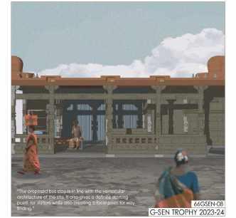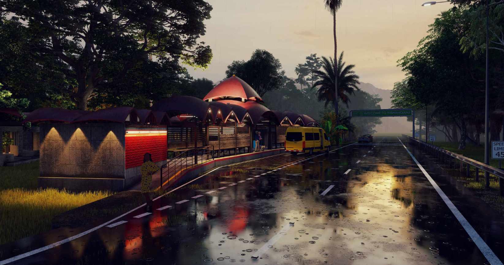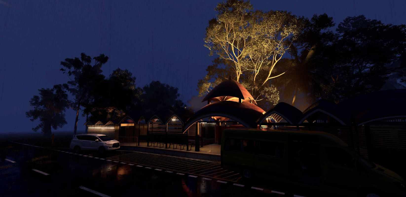 Brief: To design a bus stop in Vernacular techniques along with general accessories and department stores for the local dwellers and others. Destined to be at Shantiniketan, the birthplace of renowned poet and writer, Rabindranath Tagore, the design tends to celebrate cultural legacy by applying vernacular techniques, like the distinct Bangla Chala roof style.