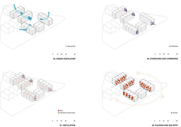 The single-loaded corridor typology drawn from the Mumbaichawls becomesa catalyst in fostering a sense of communityinteraction and build a senseof belongingamongst residents