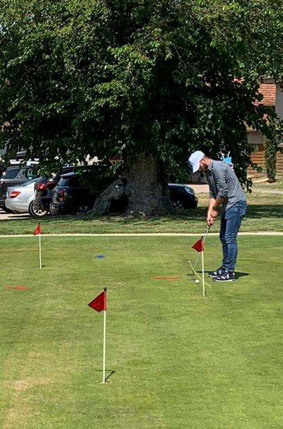 comme l’exécution du putt (utiliser un club dit « putter » afin de mettre la balle dans le trou ou du moins s’en rapprocher) ou encore le fameux swing pour frapper la balle. Pour cette dernière étape, une difficulté était ajoutée, il fallait réussir à envoyer la balle derrière l’étang. Même si beaucoup de balles ne l’ont jamais atteint ou au contraire y ont sombré, le rire était évidemment de la partie. Tout comme l’était la compétition : des points étaient attri-