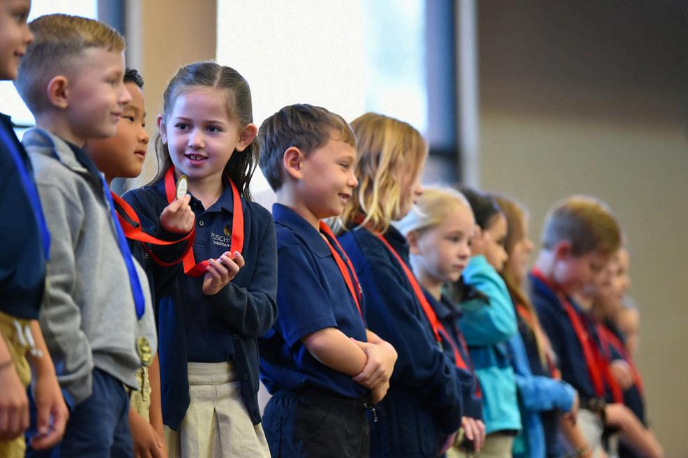 In fifth grade, students take on new leadership rolls. They open chapel in prayer, raise the flag for daily pledge, and empty recycling from campus bins weekly. They also help in kindergarten classes, and in chapel by sitting with younger students, as well as set up tables/chairs for special events.