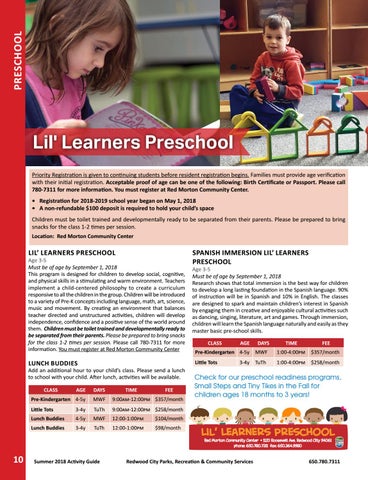 Lil’ Learners Preschool Red Morton Community Center • 1120 Roosevelt Ave. Redwood City 94061 phone: 650.780.7311 fax: 650.364.9980