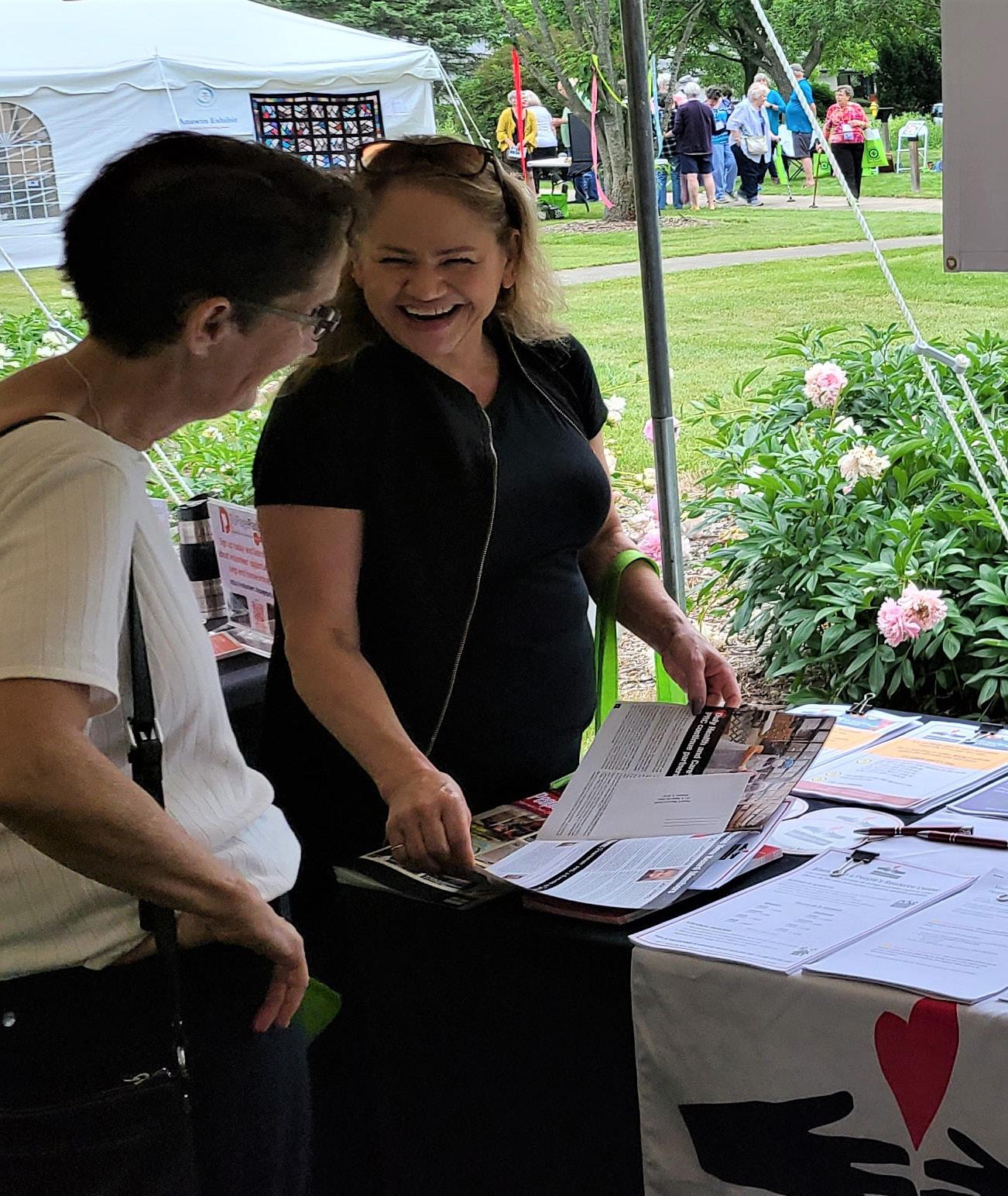PRC CEO Jeni Fabian with PRC Board Member Pat Norton, OSF from the Wheaton Franciscans and Yohans Gebreselasse, who works with the Wheaton Franciscans. PRC Board Member Lina Valdez converses with a guest at PRC’s Ministry Collaborator table.Debbie worked in the high-end travel industry until April 2020, when COVID-19 forced her employer to furlough her.