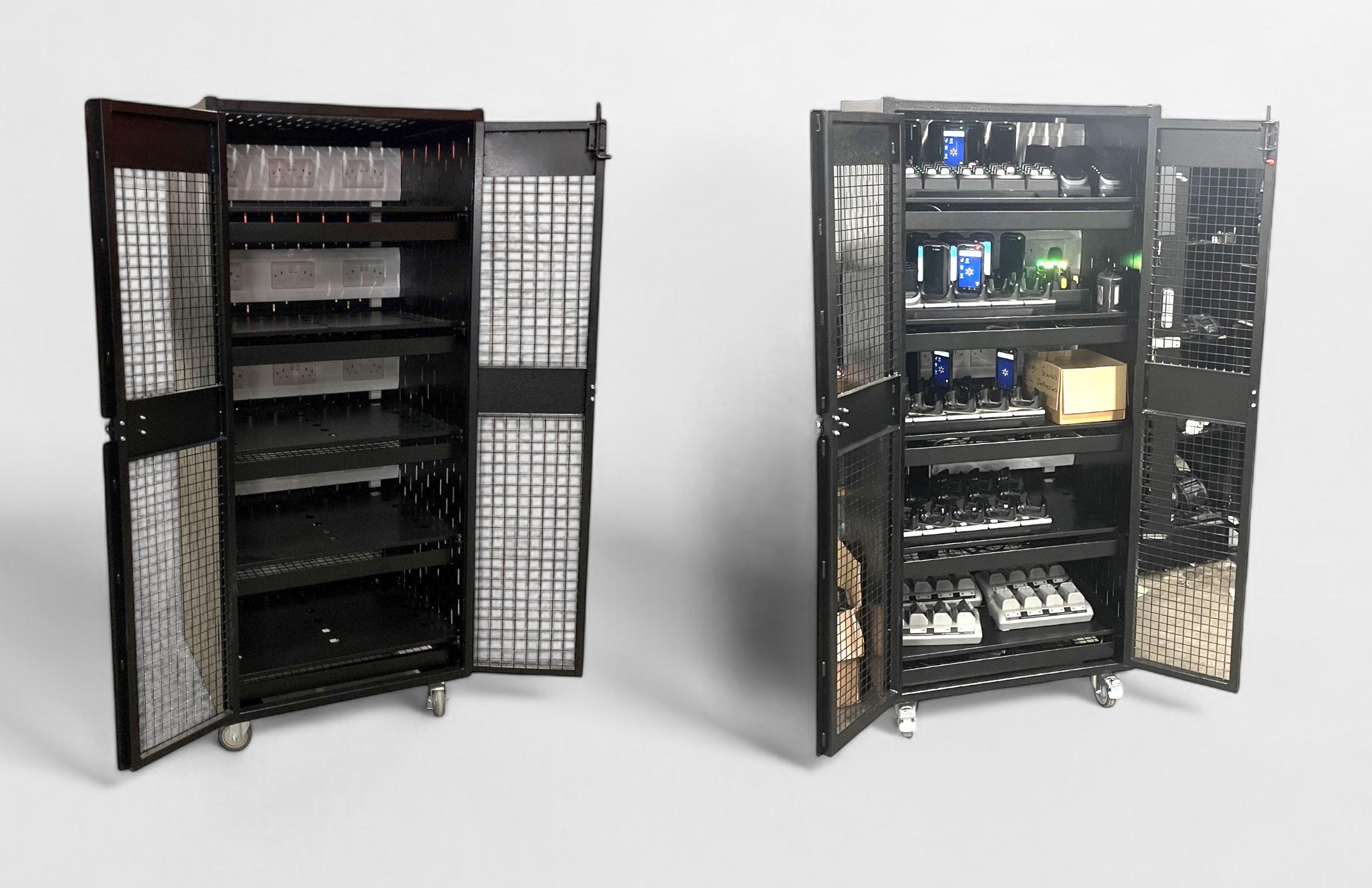 CHARGING CABINETSSlide out shelf holds chargers and plugsAll units can be made to any sizeLaptop Charging Unit
