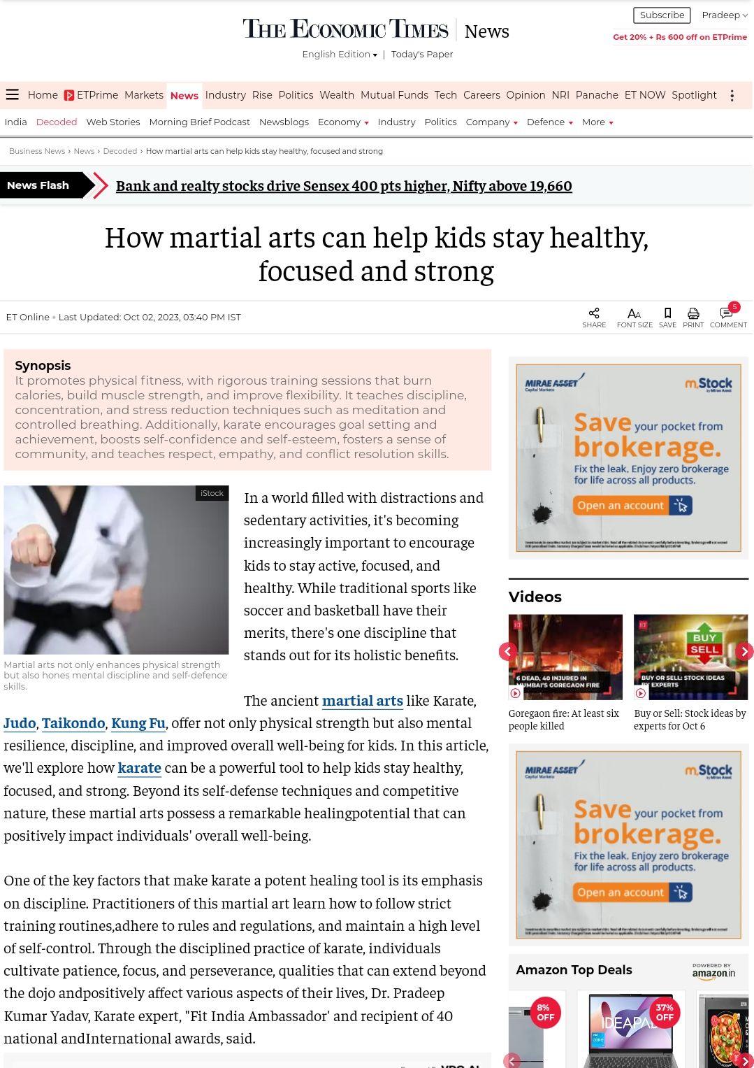 Karate Coach Dr. Pradeep Kumar has made a significant impact on society through his selfless Karate coaching and book, promoting fitness, health and overall well-being to thousands of unprivileged children, making a fit India.