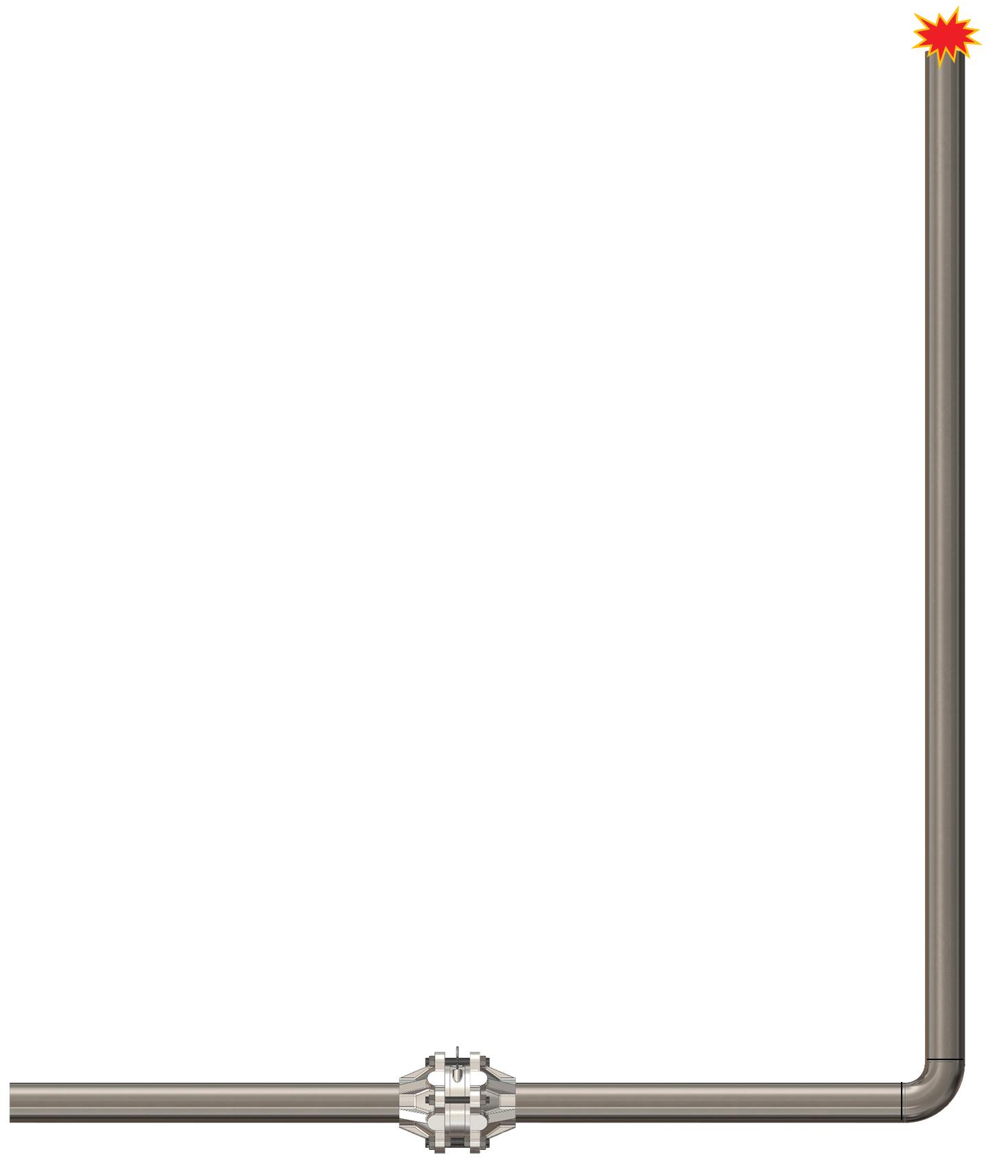 1. The piping on the unprotected side, consisted of ignition source, “A” ft of straight pipe, one 90 degree bend, “B” ft of straight pipe, then the arrester.