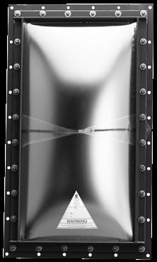 The CFR (rectangular) and CFS (square) series are prebulged 316SS vent panels with vacuum support and fluoropolymer seal. The CFR and CFS vent panels have an operating ratio of up to 80% of the minimum tagged rating.