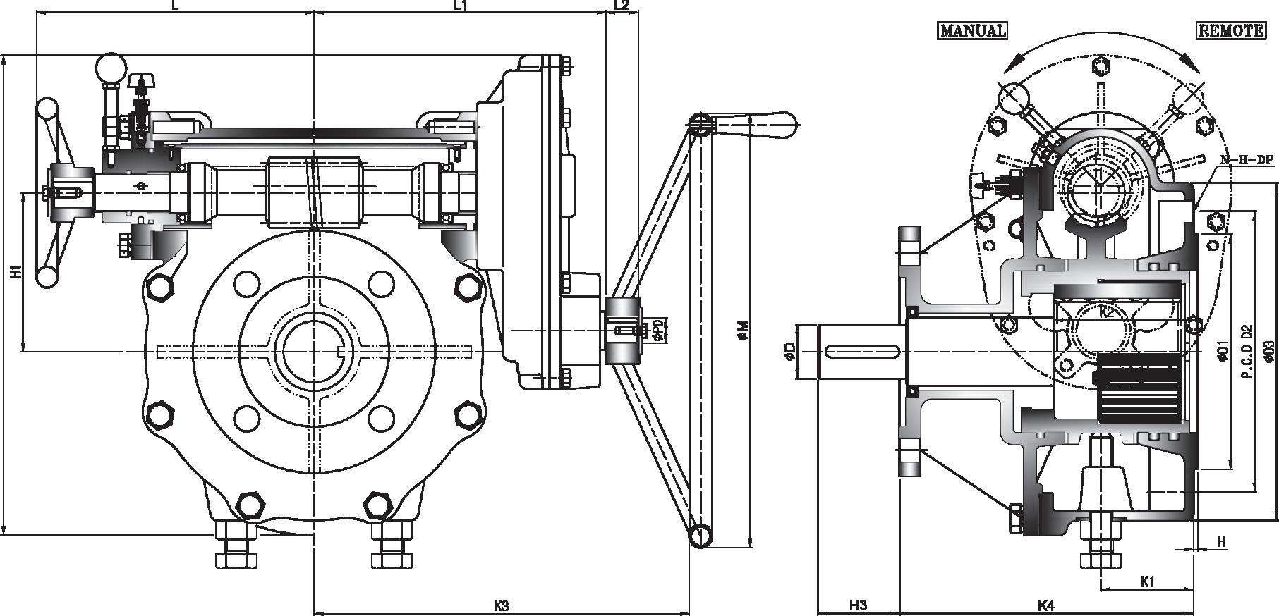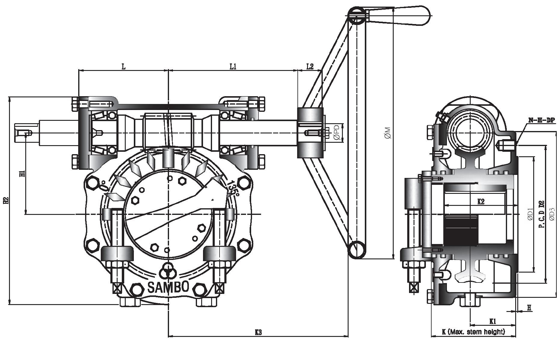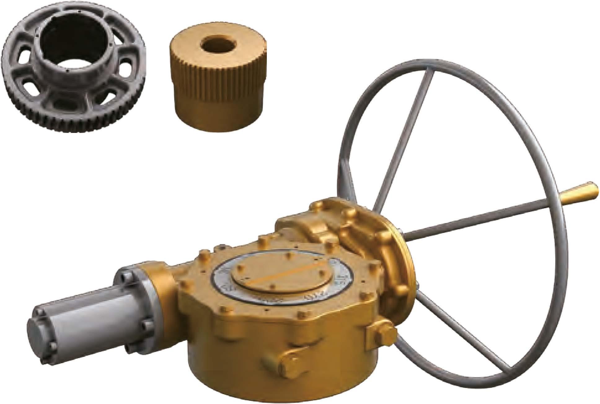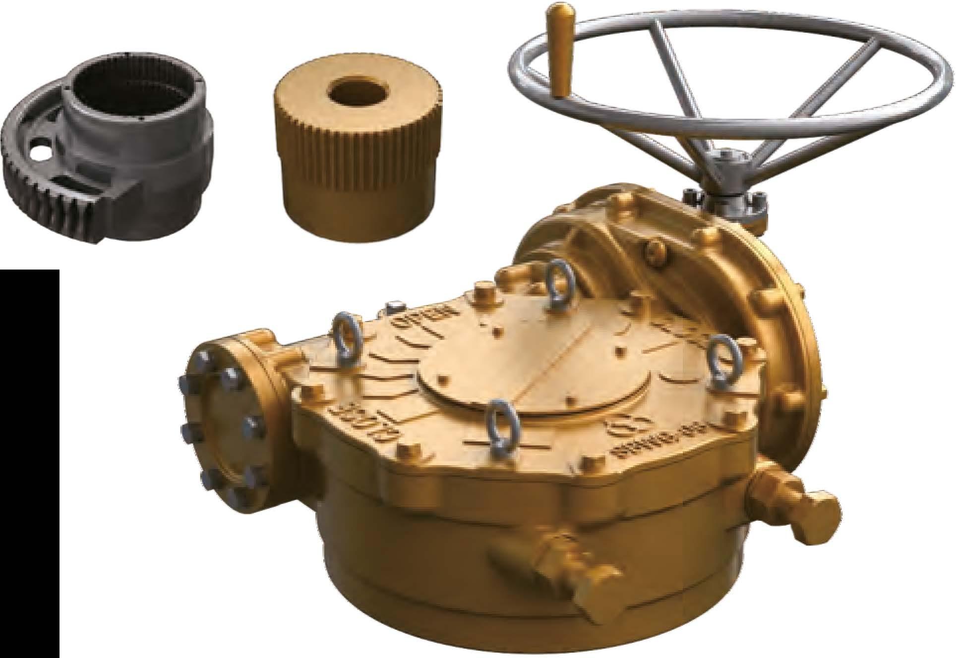 All units furnished with removable splined bushings to permit accurate position between the gear drive and the value shaft.