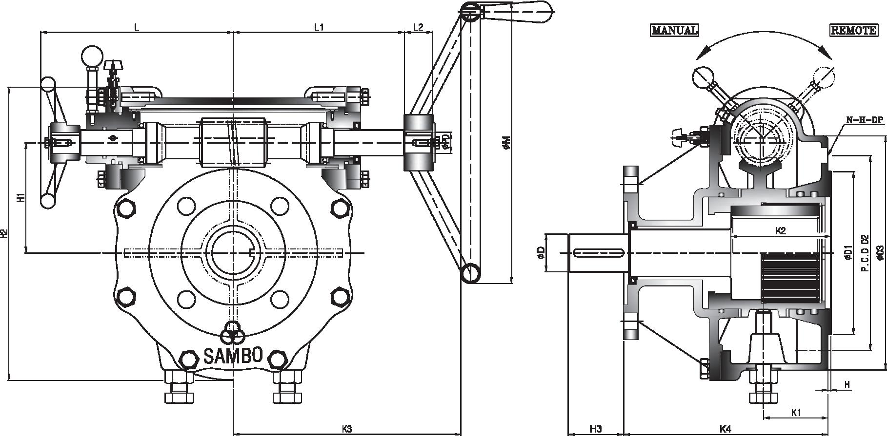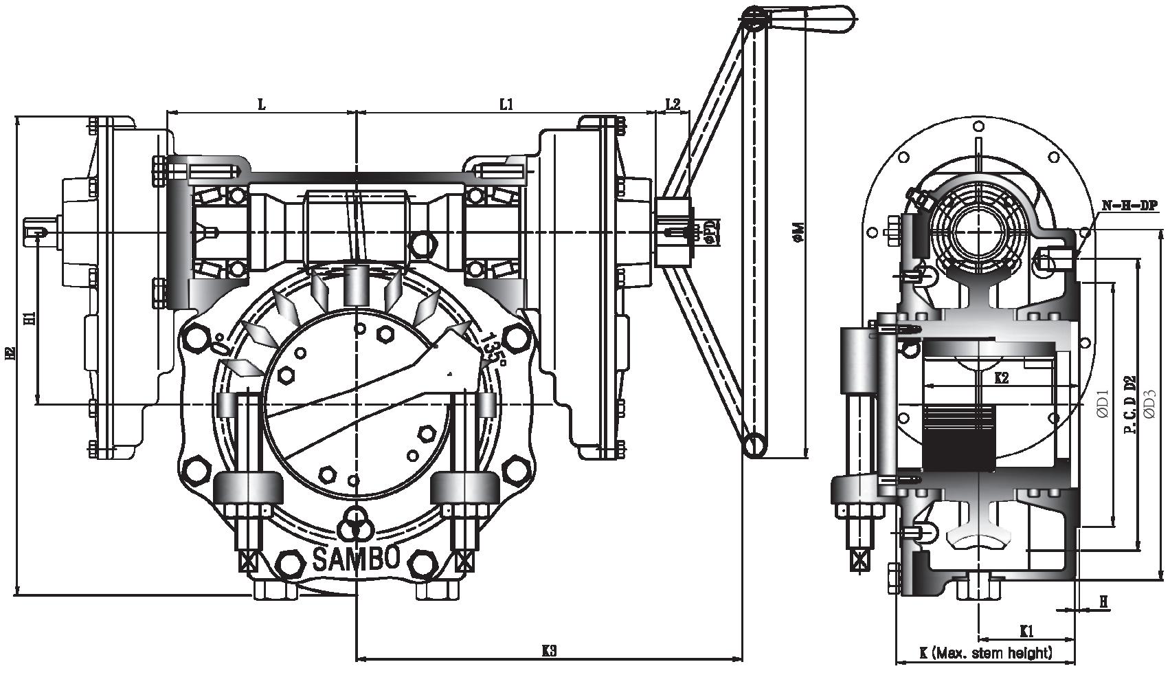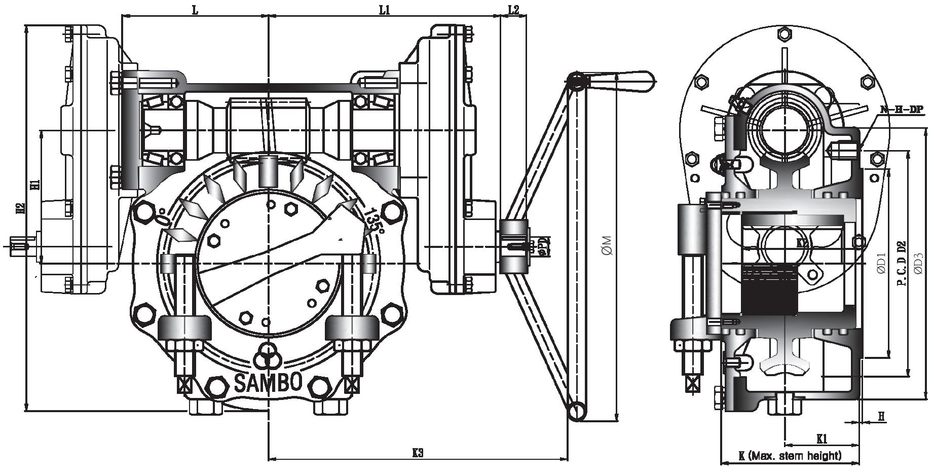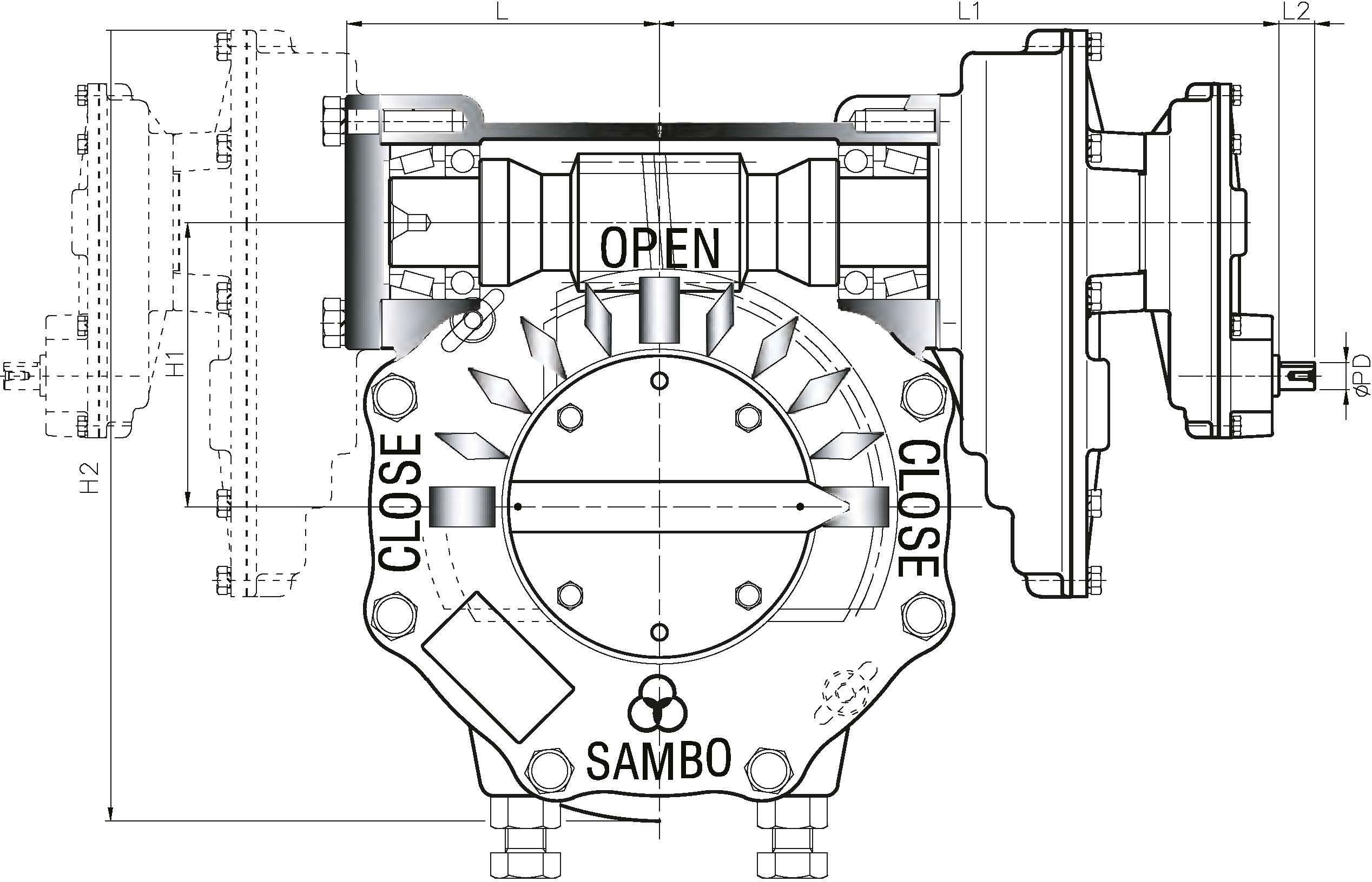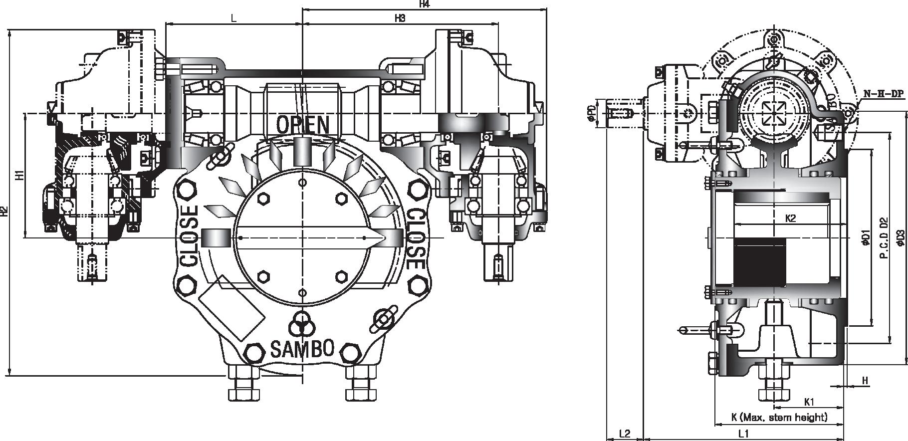 All units furnished with removable splined bushings to permit accurate position between the gear drive and the value shaft.