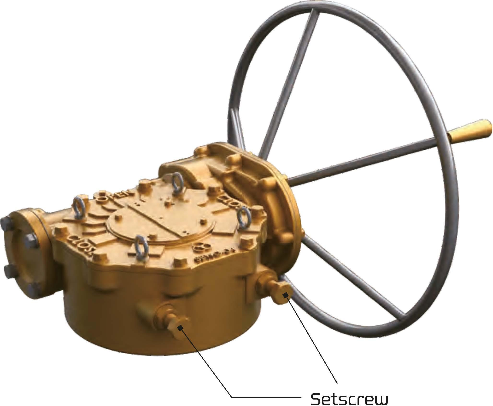 The stop bolts allow for position accuracy of +/-5° . Each bolt also includes Buna-N sealing washers or prevent water intrusion