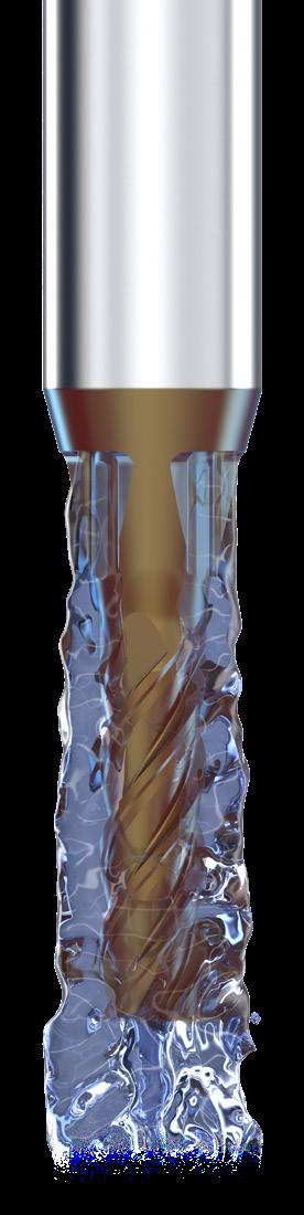 Möglich macht das eine ausgeklügelte Schneidengeometrie, die hochdynamische Fräsprozesse erlaubt. Speziell bei dünnwandigen, filigranen Werkstücken, die zum Aufschwingen neigen, oder wenn labile Spannsituationen vorherrschen, spielt der Fräser seine Stärken aus. Auch Taschen und Nuten können hoch effizient, präzise und mit höchster Laufruhe gefertigt werden. Er ist im Durchmesserbereich von 1.0 - 8.0 mm in zwei verschiedenen Schnittlängen 3 x d und 4 x d für alle Werkstoffe erhältlich.