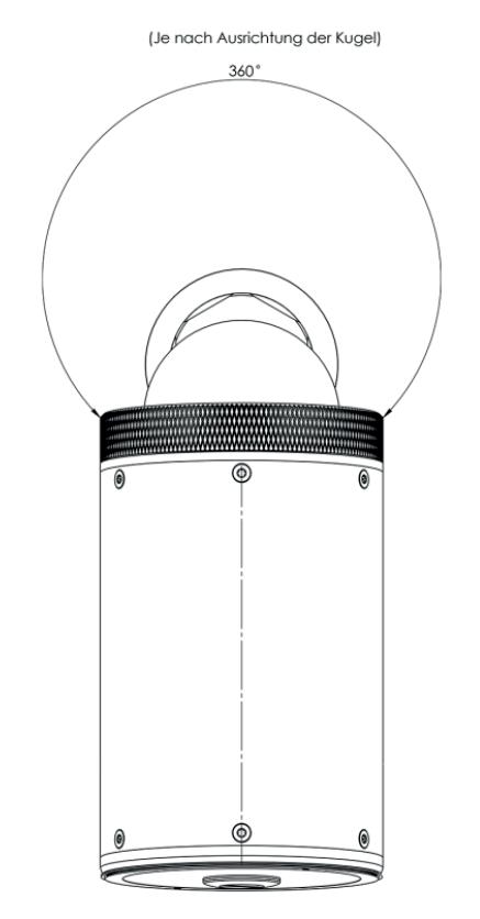 Kamera mit rotierender Sichtscheibe Kugelgelenkhalterung intern