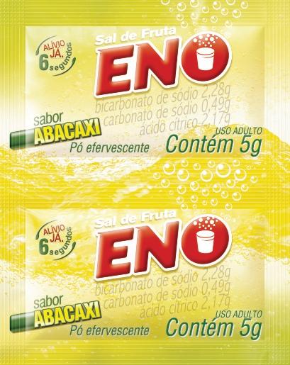 SAL DE FRUTA ENO: M S 1 9290 0003 Princípios ativos: bicarbonato de sódio, carbonato de sódio, ácido cítrico Contraindicações: alergia a quaisquer componentes da fórmula; se tiver pressão alta, problemas no fígado, coração ou rins ou se seguir uma dieta restrita em sódio; menores de 12 anos de idade | LEITE DE MAGNÉSIA ENO: MEDICAMENTO NOTIFICADO conforme RDC n° 576/2021 Princípio ativo: leite de magnésia Contraindicação: Não use este medicamento em caso de doença dos rins | ENGOV: M S 1 7817 0093 007 4 Princípios ativos: maleato de mepiramina, hidróxido de alumínio, ácido acetilsalicílico, cafeína Contraindicações: alergia aos componentes da fórmula ou outros AINES; úlcera gastroduodenal; gravidez; gastrite; úlcera do estômago; suspeita de dengue ou catapora; menores de 12 anos; pacientes com histórico de alcoolismo crônico; não usar com outras substâncias que deprimem o SNC e com bebidas alcoólicas; usar com cautela em portadores de Diabetes | ENTEROGERMINA: SUPLEMENTO ALIMENTAR LÍQUIDO. Princípio ativo: Bacillus clausii Este produto não deve ser consumido por gestantes, lactantes, pessoas imunocomprometidas ou pessoas acometidas de condição de saúde debilitante grave | COLACT: M S 6 6325 0020 001 6 Princípio ativo: lactulose Contraindicações: gestantes, nutrizes e crianças, somente devem consumir este produto sob orientação de nutricionista ou médico | BISALAX: M S 1 04971168 001 7 Princípio ativo: bisacodil Contraindicações: alergia aos componentes da formulação, íleo paralítico, obstrução intestinal, apendicite, inflamação aguda do intestino, dor abdominal grave com enjoo e vômitos, desidratação intensa Atenção diabéticos: contém açúcar | LACTOSIL: SUPLEMENTO ALIMENTAR EM TABLETES Princípio ativo: lactase A dose deve ser ajustada às necessidades individuais ou conforme a quantidade de lactose ingerida Este produto não deve ser consumido por gestantes, lactantes e crianças ENTEROGERMINA E LACTOSIL: Estes produtos não são medicamentos Não exceder a recomendação diária de consumo indicada na embalagem Mantenha fora do alcance de crianças | SIMETICONA BIOSINTÉTICA: MEDICAMENTO DE NOTIFICAÇÃO SIMPLIFICADA RDC N° 199/2006 AFE n° 1 00 573 9 Princípio ativo: simeticona Contraindicações: alergia aos componentes da fórmula; distensão abdominal grave; cólica grave; dor persistente; massa palpável na região do abdômen "Medicamento Genérico Lei nº 9 787/99" Sal de Fruta ENO R$2,99 c/ 2 envelopes | 5g | Todos os sabores cada Leite de Magnésia ENO R$11,99 120ml | cód 738449 | 738450 cada Engov R$20,80 c/ 24 comp | cód 726880 cada Enterogermina R$39,99c/ 10 frascos | 5ml | cód 722160 cada Bisalax R$6,49 c/ 20 drágeas | 5mg | cód 705077 cada Simeticona Biosintética R$4,99 10ml | 75mg/ml | cód 740020 cada R$28,99 cada R$19,99 cada Colact Ameixa | 120ml | 667mg/ml | cód 727966 R$ 15,90 R$ 13,99 cada cada Lactosil c/ 30 tabletes | 10 000 FCC | cód 728109 R$ 49 , 90 2 R$ 39,90 cada cada